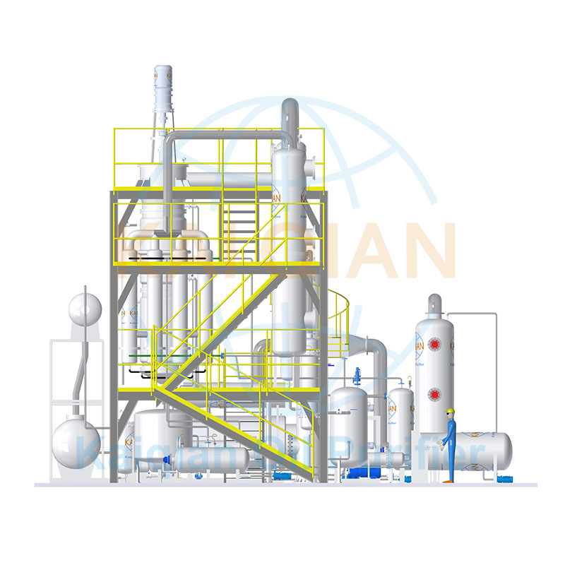 2.1.輪胎油塑料油精餾設備裝置適用于裂解后的輪胎毛油、塑料毛油,通過減壓精餾提純,解決了裂解設備不能精餾毛油黑油難題。
