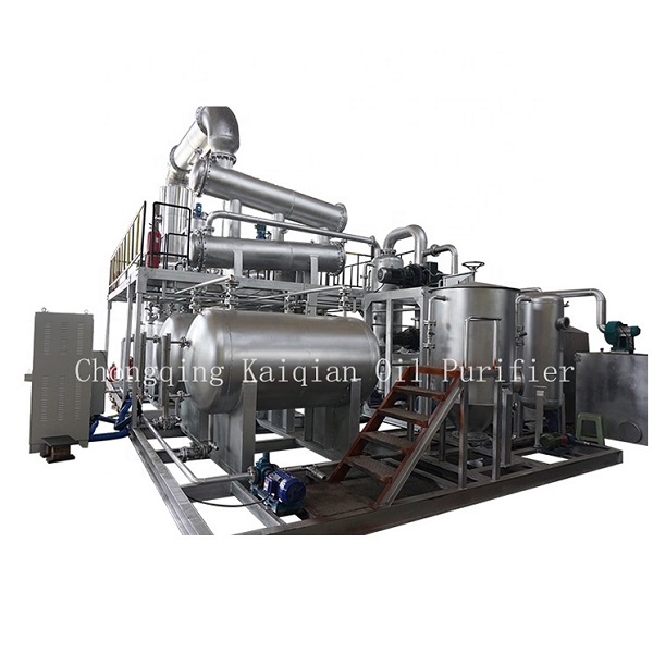 廢油分子蒸餾是一種新型的石油化工分離技術(shù),它是在高真空技術(shù)條件下遠(yuǎn)低于常壓沸點(diǎn)的分離過程。采用多級分子蒸餾技術(shù),研究礦物質(zhì)廢油獲得不同溫度及真空度條件下脫水、采集產(chǎn)品餾分,為高真空條件分離重質(zhì)油提供了相關(guān)工藝參數(shù),分子蒸餾工藝綜合應(yīng)用廢油分子蒸餾工藝,通過高真空使沸點(diǎn)大幅度降低,從而使廢潤滑油中雜質(zhì)脫除時(shí)不發(fā)生分子斷鏈和降解,既保證廢油提煉潤滑油產(chǎn)品黏度及閃點(diǎn)等指標(biāo)合格,又確保廢油生潤滑油顏色淺,質(zhì)量可達(dá)到或超過原潤滑油質(zhì)量標(biāo)準(zhǔn)。