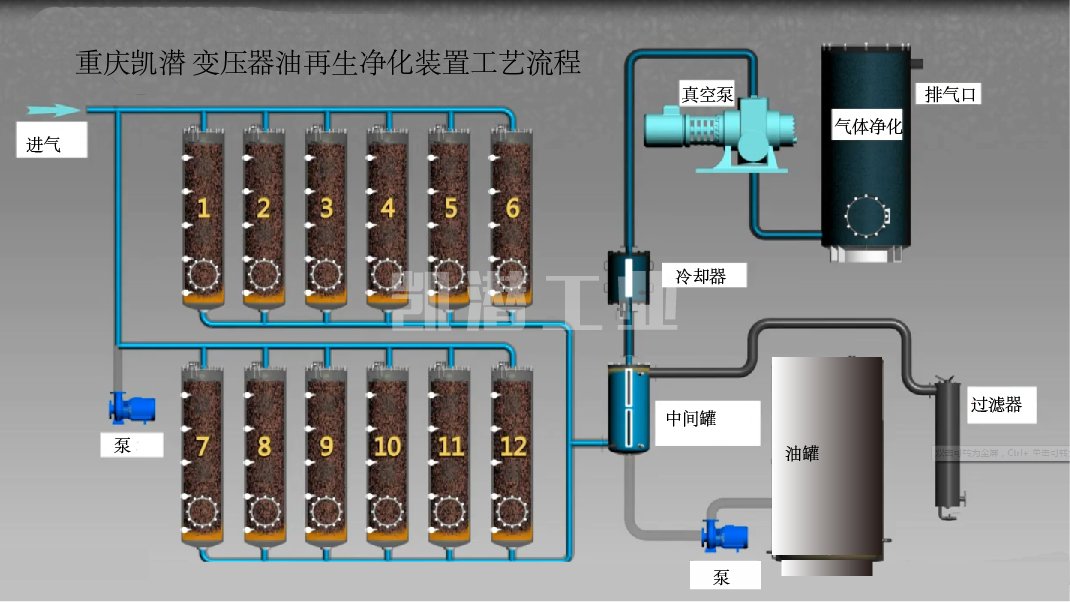 重慶凱潛工業(yè)變壓器絕緣油再生裝置結合國內(nèi)外_先進變壓器絕緣油再生處理工藝,既能除去劣質的變壓器油酸值、氧化物、積碳、烴、氫、乙炔、開關油中的酸性成分、懸浮物質、沉淀物質,能使劣質的變壓器油、開關油再生利用。